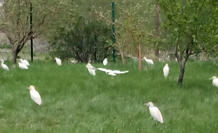 Hakkari’de baharın müjdecisi olan sığır balıkçı kuşları sürü halinde bir iş yerinin bahçesine konması şaşırttı.