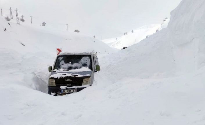 Çığ bölgesine gelen ekipler, kısmen kar yığınları altında kalan hafif ticari aracı çıkarırken, yola açmak için de çalışma başlattı.