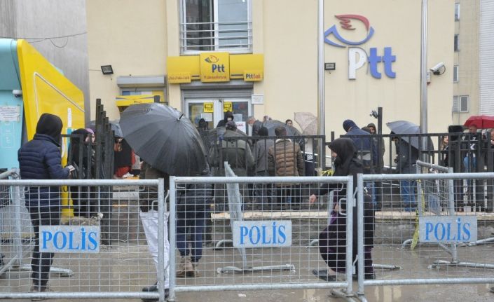 Hakkari’nin Yüksekova ilçesinde korona virüs kapsamında vatandaşlara verilen yardım nedeniyle PTT önünde güvenlik önlemleri arttırıldı.