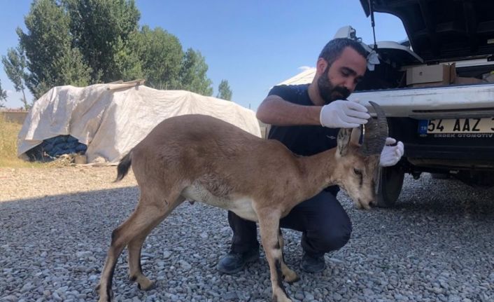 Hakkari’nin Yüksekova ilçesinde köylüler tarafında yaralı bulunan dağ keçisi tedavi altına alındı.