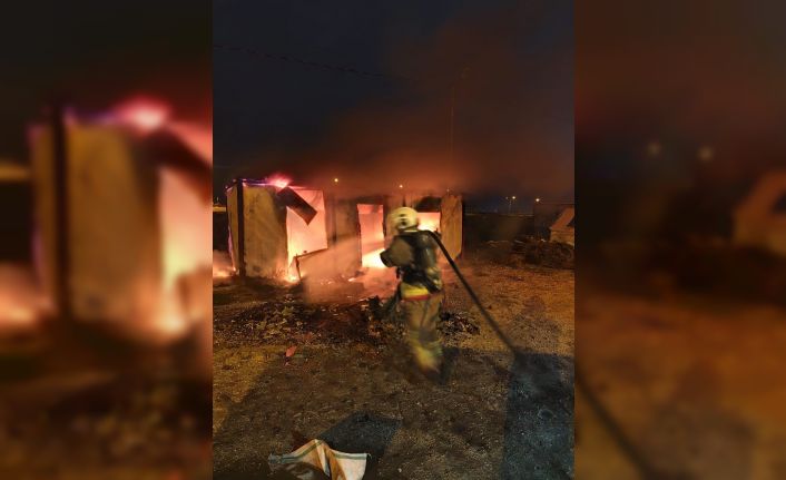 Hatay’da alevlere teslim olan konteyner yanarak kullanılmaz hale geldi.
