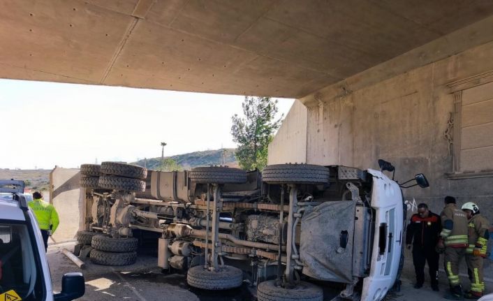 Hatay’da sürücüsünün kontrolünü kaybetmesiyle devrilen hafriyat kamyonun sürücüsü yaralandı.