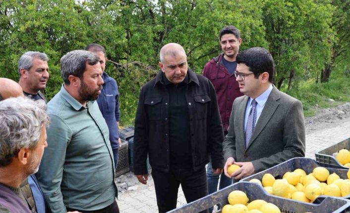 Kaymakam Eroğlu, İlçe Tarım ve Orman Müdürü Serkan Yılmaz ve müdürlük personeli ile birlikte Samet Hamarat’a ait Avcılarsuyu Mahallesindeki Yediveren limon bahçesinde incelemelerde bulunarak hasada eşlik etti.