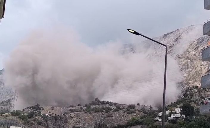 Hatay’ın İskenderun ilçesinde kent merkezine yakın bir noktada bulunan taş ocağında gerçekleştirilen patlamayla toz bulutu hakim oldu. Patlamanın etkisiyle depremzede vatandaşlar tedirgin olurken, mahallenin toz bulutu altında kaldığı anlar kameraya yansıdı.