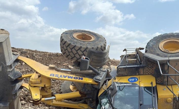 Hatay’da devrilen iş makinasının sürücüsü yaralandı.
