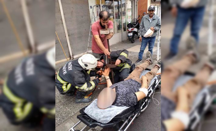 Elini kepenk makarasına sıkıştıran adamın yardımına itfaiye yetişti