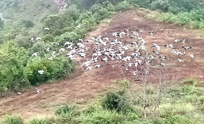 Sonbaharın yaklaşmasıyla güneye göçe başlayan leyleklerin Hatay’daki durağı Kuyuluk Ormanları oldu.
