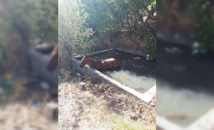 Hatay’ın Altınözü ilçesinde sulama göletine düşen atı, itfaiye ekipleri kurtardı.