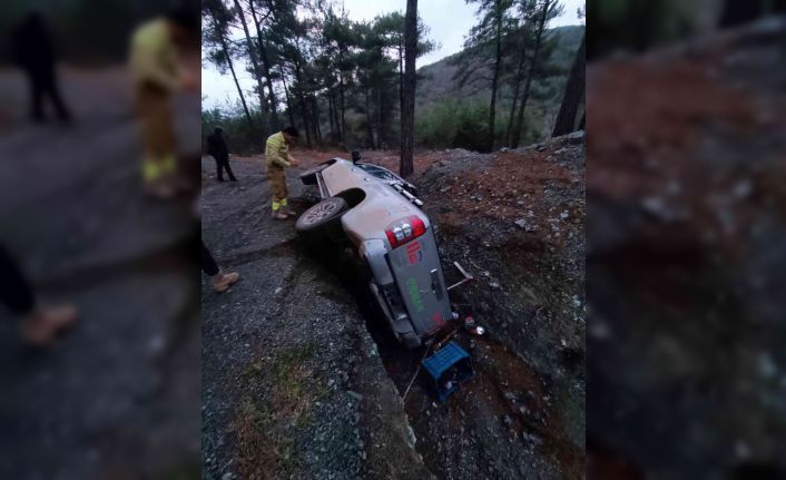 Hatay’ın Payas ilçesi kırsalından görevden dönen Orman işletme şefliğine ait ilk müdahale aracı yağış nedeniyle kayganlaşan yolda kontrolden çıkarak devrildi.