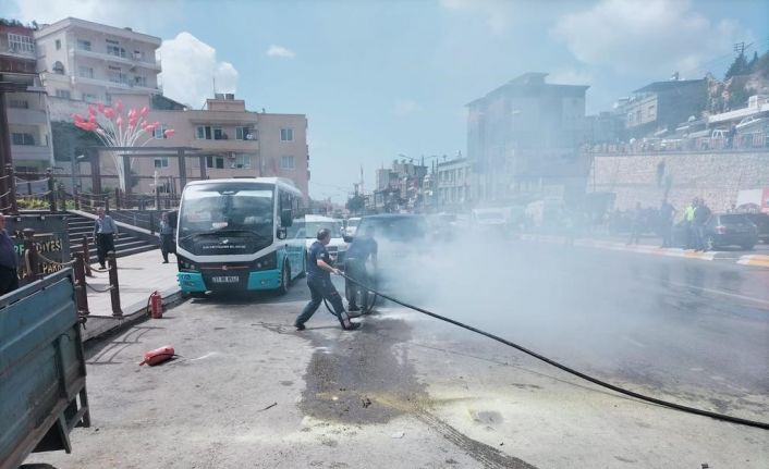 Belen Karayolu çarşı merkezinde aracında yangın çıktığı fark eden araç sahibi durumu, 112 Acil Çağrı Merkezi’ne bildirdi. Olay yerine gelen Hatay Büyükşehir Belediyesi itfaiye ekipleri yangını söndürdü. Yangında can kaybı yaralanma meydana gelmezken, araçta maddi hasar oluştu.