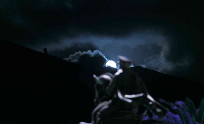 Hatay’da Atatürk büstü ile dolunay manzarası
