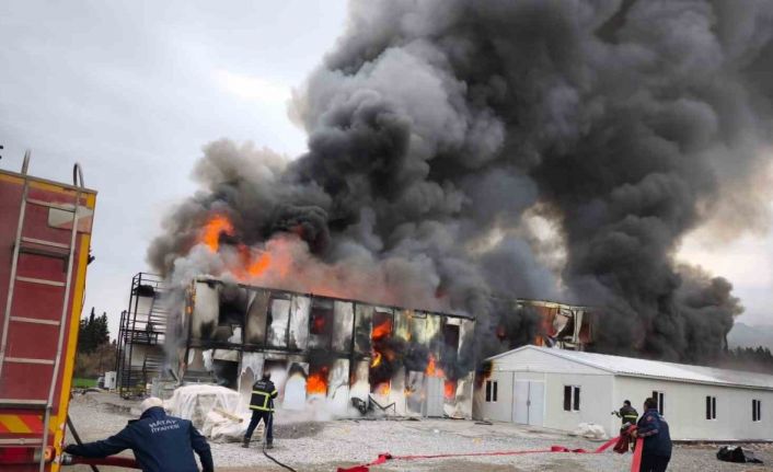 Hatay’da şantiye alanında bulunan konteyner yemekhane alevlere teslim oldu. Küle dönen yemekhanedeki alevler itfaiye ekiplerince söndürüldü.