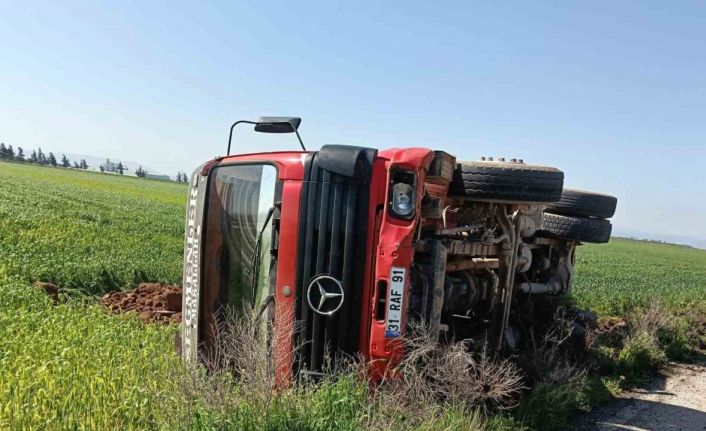 Hatay’da sürücüsünün kontrolünü kaybettiği tır devrildi