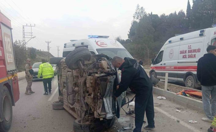 Hatay’da kontrolden çıkan otomobilin takla atarak yan yattığı kazada 5 kişi yaralandı.