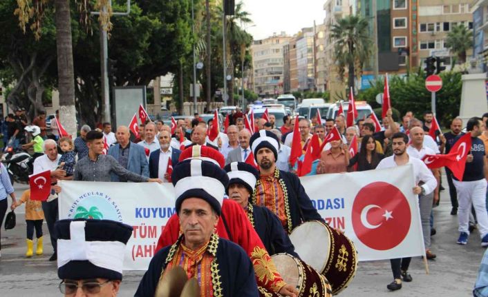 Ahilik Haftası kutlamaları için Şehit Pamir Caddesinde bir araya gelen kuyumcular saatçiler çiçekçiler ve fotoğrafçılar odası, sivil toplum kuruluş temsilcileri, esnaflar ve vatandaşlar Türk bayrakları ve mehter takımı eşliğinde sahile kadar yürüdü.