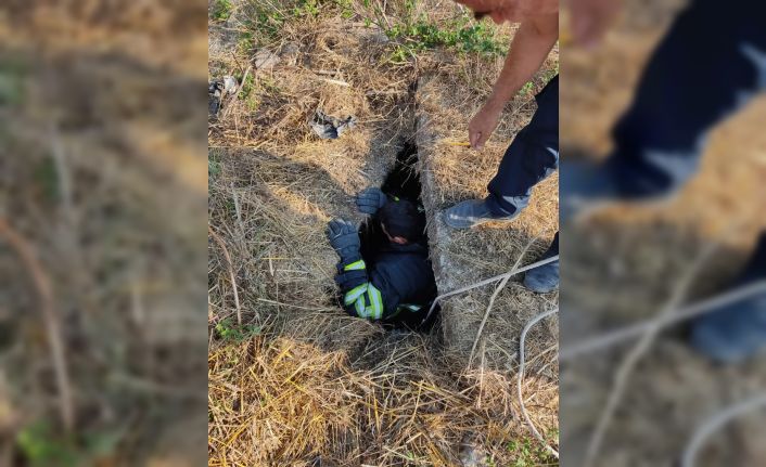 Hatay’ın Yayladağı İlçesinde kanalizasyon kuyusuna düşen keçi kurtarıldı.