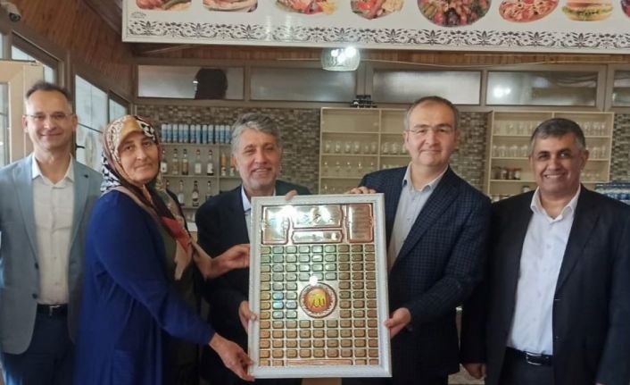 Yemek sonunda kaymakamlık ve belediye tarafından hazırlanan Allah’ın 99 isminin yazılı olduğu (Esma-ül Hüsna) tablolar, şehit annelerine hediye edildi.