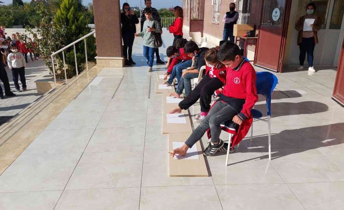Hatay’ın Dörtyol ilçesinde öğrenciler bedensel engellilerin yaşamlarına dikkat çekmek için “yapacaklarım sınırlı, ama ufkum geniş, ellerimiz olmadan resim yapabilir miyiz?” sorusuna ayaklarıyla resim yaparak, gözleri kapalı yemek yiyerek yanıt aradılar.
