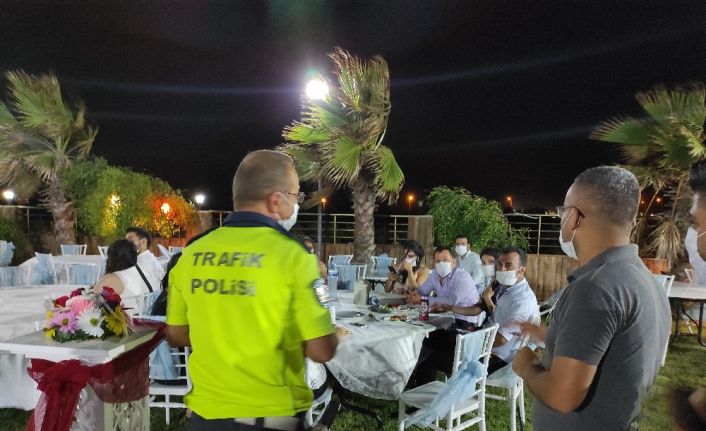 Korona virüs tedbirleri çerçevesinde Hatay’ın Samandağ ilçesinde iş yerleri denetiminin ardından hafta sonu düğün salonları denetlendi.