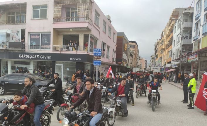 Bir araya gelen motosikletli grup İdlib’teki hain saldırı sonucu şehit düşen askerler için konvoy yaparak Samandağ’ı turladılar. Yürüyüş yapan gruptakiler ise ellerinde Türk bayraklarıyla "Şehitler ölmez vatan bölünmez" ve "Vatan sana canım feda" sloganları attı.