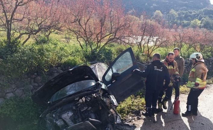 Hatay’da bahçe duvarına çarparak hurdaya dönen otomobilin sürücüsü yaralandı.