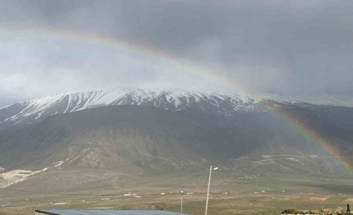 Ağrı Dağı’nın eteklerinde beliren gökkuşağı, renklerin ahengiyle görsel bir şölen sundu. Doğayla bütünleşen bu manzara, vatandaşların ilgisini çekti. Gökkuşağının Ağrı Dağı’nın heybetli siluetiyle birleşmesi, kartpostallık görüntüler ortaya çıkardı. Ağrı Dağı’nın etrafında nadiren görülen bu doğa olayı, izleyenlere de görsel bir şölen sundu.