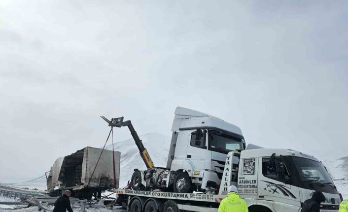Doğubayazıt-Iğdır kara yolunda cam yüklü tır buzlanmadan dolayı kaza yaptı, araç sürücüsü yaralandı.