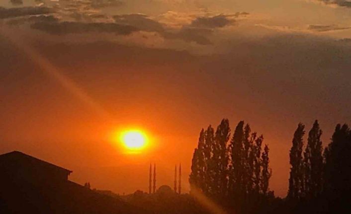 Iğdır’da gün batımı; Ulu Camiinin minareleri ve Tekelti Dağı birlikte görsel şölen oluşturdu.