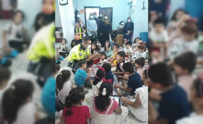 Iğdır İl Emniyet Müdürlüğü Trafik Denetleme Şube Müdürlüğünde görevli trafik polisleri yaz Kur’an kursunda eğitim gören çocuklara trafik ile ilgili eğitim verdi.