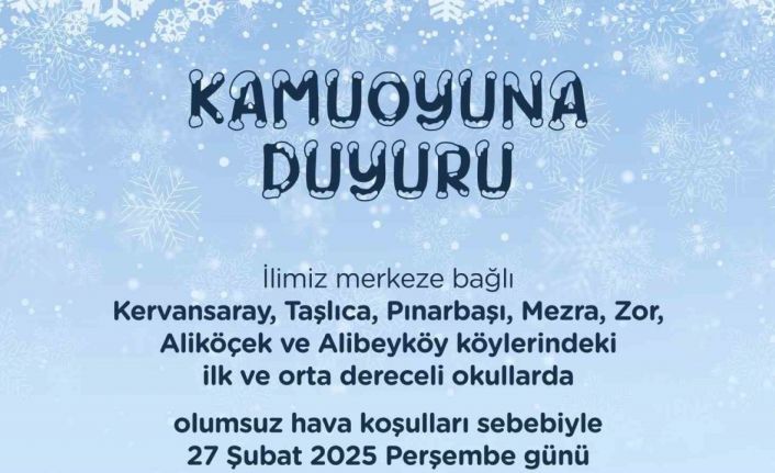 Iğdır’ın yüksek kesimlerinde etkili olan fırtına ve tipiden dolayı yarın için bazı yerlerde eğitime ara verildi. Iğdır Valiliğinden yapılan açıklamada, kent merkezine bağlı Kervansaray, Taşlıca, Pınarbaşı, Mezra, Zor, Aliköçek ve Alibeyköy köylerindeki ilk ve orta dereceli okullarda olumsuz hava şartlarından dolayı Perşembe günü eğitime ara verildiği duyuruldu.