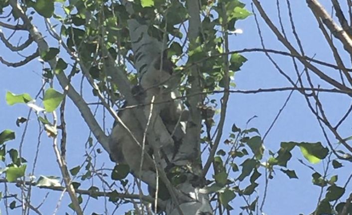 Iğdır merkezde köpekten korkan ve ağaca çıkan kedi ekipler tarafından kurtarıldı.