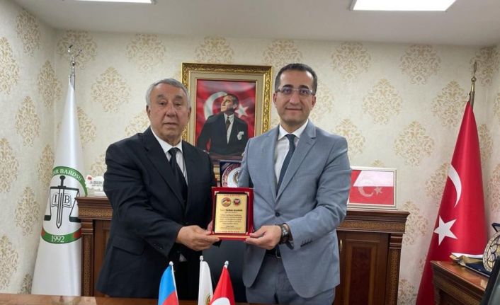 Türkiye Azerbaycan Dostluk Dernekleri Federasyonu Genel Başkan Yardımcısı ve Iğdır Azerbaycan Evi Derneği Başkanı Serdar Ünsal, Türkiye Azerbaycan kardeşliğine destek veren Iğdır Barosu başkanı Serkan Alakan’a teşekkür plaketi verdi.