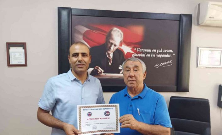 Türkiye Azerbaycan Dostluk Dernekleri Federasyonu Genel Başkan Yardımcısı ve Iğdır Azerbaycan Evi Derneği başkanı Serdar Ünsal, Türkiye Azerbaycan kardeşliğine destek veren öğretmen Muharrem Verberi ve Serhat Türkeli’ye teşekkür belgesi verdi.