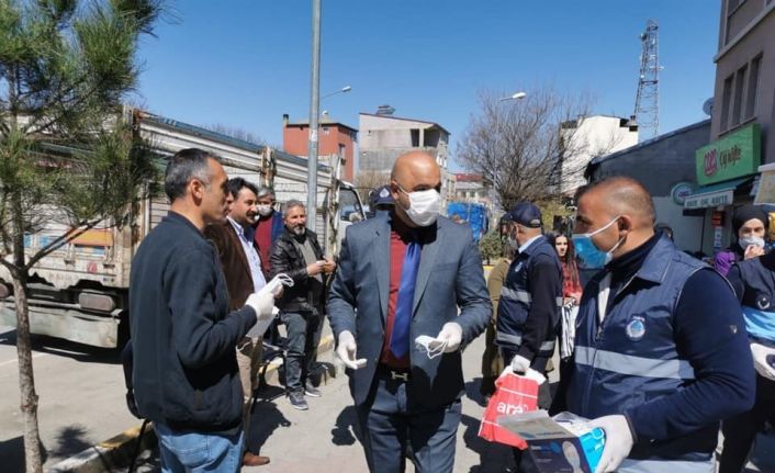 Tuzluca Belediyesi tarafından esnaf ve vatandaşlara, maske ile eldiven dağıtımı yapıldı.