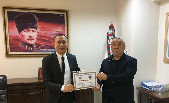Türkiye Azerbaycan Dostluk Dernekleri Federasyonu Genel Başkan Yardımcısı ve Iğdır Azerbaycan Evi Derneği Başkanı Serdar Ünsal, Türkiye Azerbaycan kardeşliğine destek veren Kamu Hastaneleri Birlik Başkanı Taner Başaran’a teşekkür belgesi verdi.