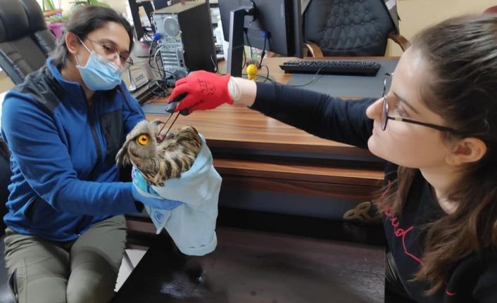 Iğdır’da, bir vatandaş tarafından bulunan Puhu kuşu tedavi altına alındı.