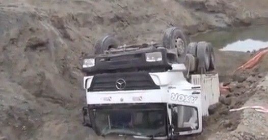 Yol çöktü, kamyon devrildi: 1 yaralı