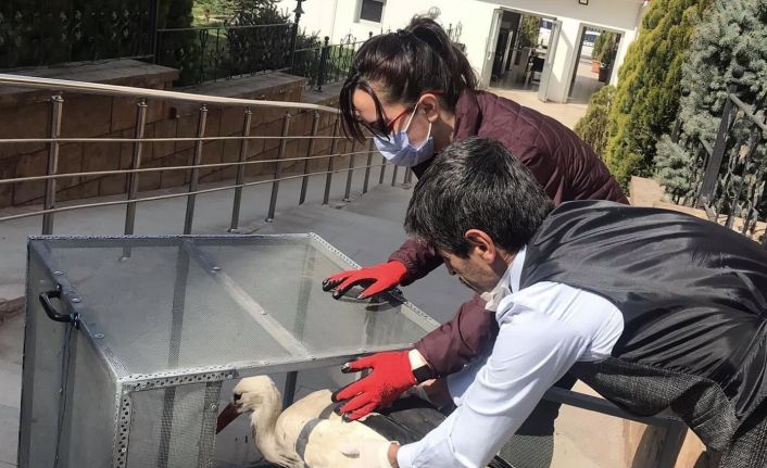 Iğdır’da yuvadan düşen ve görevliler tarafından bulunan leylek, ekipler tarafından tedavi altına alındı.
