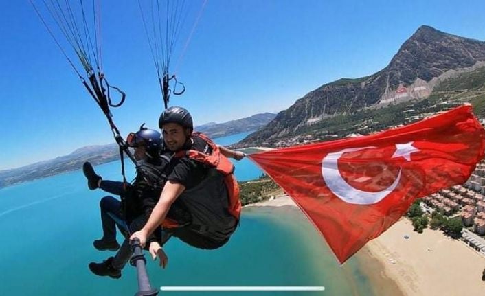 Isparta’nın Eğirdir ilçesinde paraşütçüler, 19 Mayıs Atatürk’ü Anma, Gençlik ve Spor Bayramı’nı havada Türk bayrağı açarak kutladı.