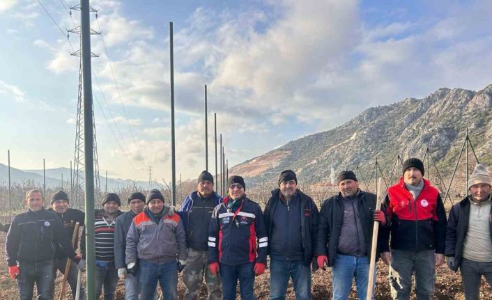 Isparta’nın Eğirdir ilçesinde elma fidanı dikimi yapan çiftçilere modern tarım yöntemleri anlatıldı.