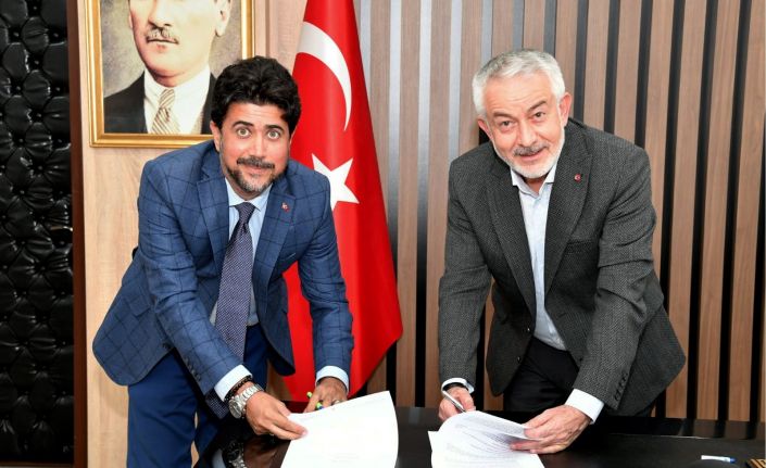 Protokol imza töreni sonrasında THY Antalya Kargo Bölge Müdürü Muhittin Hasan Uncular, Başkan Başdeğirmen’e THY kargo uçağı maketi hediye etti.