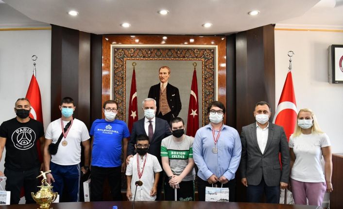 Ardından sporcularla ve antrenörlerle uzun uzun sohbet eden Vali Seymenoğlu sporculara hediyelerini takdim ederek fotoğraf çektirdi.