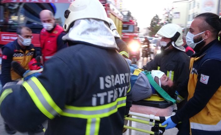 Isparta’da bir işyerinde yük asansörünün düşmesi sonucu 2 kişi yaralanırken, sağlık ekipleri yaralılardan birinin ilk müdahalesini düştüğü yerde yaptı.