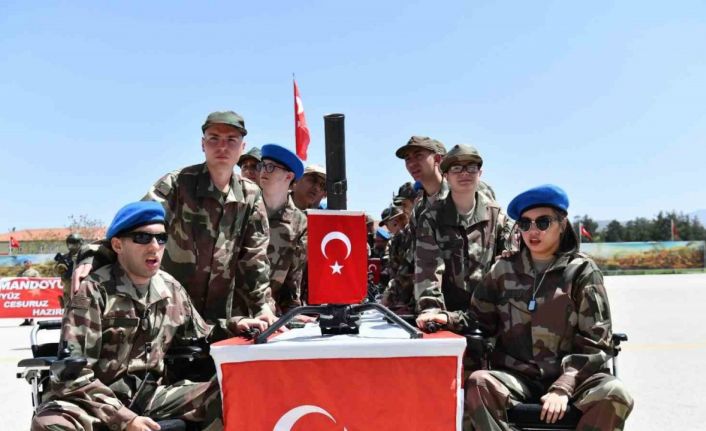 Isparta’da 10-16 Mayıs Dünya Engelliler Haftası kapsamında Terörizmle Mücadele Eğitim ve Tatbikat Merkezi Komutanlığı’nda temsili askerlik uygulamasına katılan özel gençler düzenlenen törenle yemin etti.