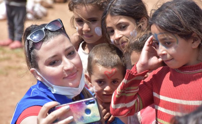 Balon ve uçurtma gibi hediyeleri alan çocuklar, yüzlerine uygulanan boyama ile de oldukça mutlu oldular. Gönüllü gençler, çocuklarla bol bol fotoğraf çektirerek, yaşadıkları mutlu anları ölümsüzleştirdiler.