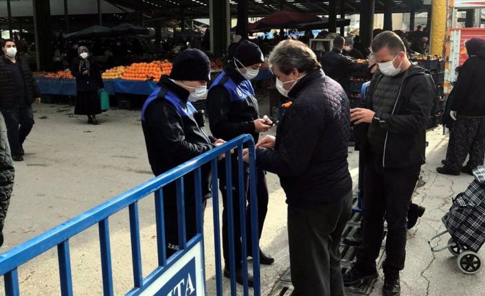 Isparta Belediyesi Zabıta Müdürlüğü ekipleri, korona virüs tedbirleri kapsamında pazar yerlerinde HES kodu ve maske kontrolü yaparken, vatandaşların ateş ölçümünü de gerçekleştiriyor.