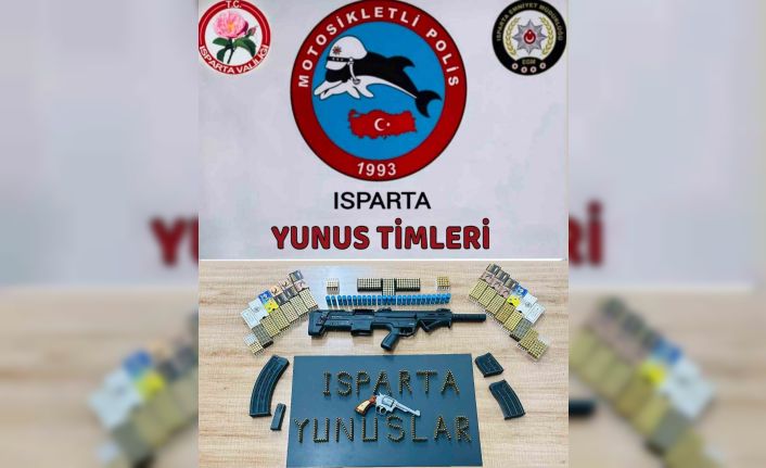 Isparta’da Asayiş Şube Müdürlüğü ekiplerinin bir şahsın evine düzenlediği operasyonda; 1 ruhsatsız tabanca, 1 ruhsatsız otomatik tüfek, bin 236 tabanca mermisi, 25 kartuş ve 4 şarjör ele geçirildi.