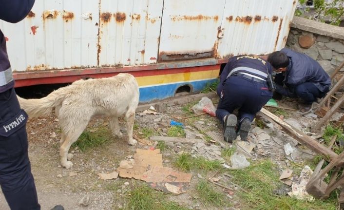 Konteyner altına sıkışan yavru köpeği itfaiye ekibi kurtardı