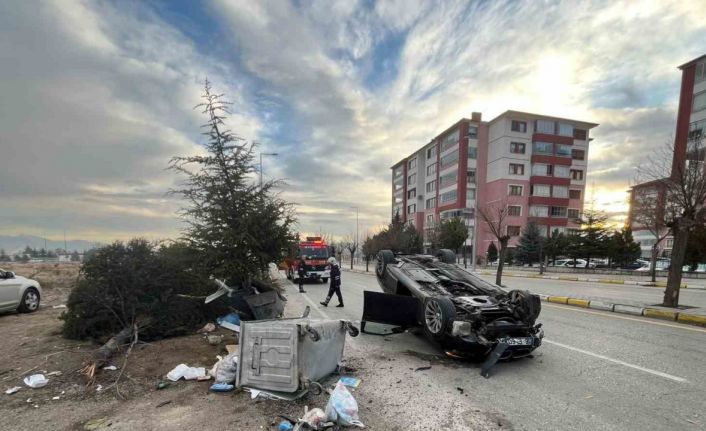 Isparta’da kontrolden çıkan lüks otomobil ağaca çarpıp ters döndü. Sürücü hafif yaralandı.