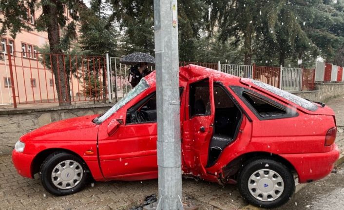 Lastiği patlayan otomobil aydınlatma direğine çarptı: 1 yaralı